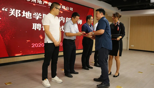 9月10日,在我國的第36個教師節(jié)來臨之際,鄭地學(xué)院首屆內(nèi)部講師受聘儀式正式啟動。黨委委員、總經(jīng)理助理馮洪濤、黨委委員張華、特邀評委鄭州商都控股集團有限公司董事長牛曉亮及集團戰(zhàn)略投資部部長呂延輝出席了本次儀式。