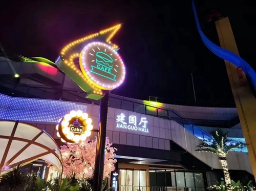 星空夜市融合位于奧體中心核心區(qū)域東下沉廣場,毗鄰長椿南路,融合市井長巷的煙火氣,以鄭地奧體建國飯店高標(biāo)準(zhǔn)餐飲、服務(wù)水準(zhǔn)為依托,結(jié)合地域特色,提煉美食精華,為廣大市民提供超多品類風(fēng)味美食。同時,傾情打造雨林風(fēng)夢幻空間美陳,邀您品美食之余,于霓虹造景中享受拍照打卡樂趣,解鎖更多夜市新玩法!