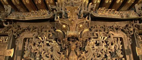 電影中大量的青銅美學(xué)元素,尤其是商王殷壽的龍德殿中磚塊刻有復(fù)雜的饕餮紋,讓人得以一窺商朝這個(gè)中國青銅器的鼎盛時(shí)代。