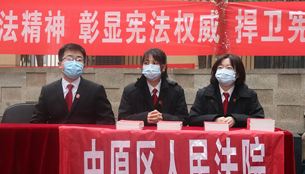 此次宣傳以“尊崇憲法 學(xué)習(xí)憲法 遵守憲法 維護憲法 運用憲法”為主題,通過懸掛條幅、擺放展架、發(fā)放宣傳冊、法律讀本、現(xiàn)場說法等方式,重點宣傳習(xí)近平總書記全面依法治國新理念新思想新戰(zhàn)略,黨的十九屆五中全會精神,新中國憲法發(fā)展歷程、憲法的地位和作用,憲法的基本原則和主要條款以及民法典、掃黑除惡、防詐騙、防范非法集資等相關(guān)內(nèi)容。