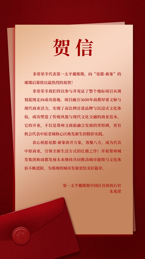 “亳都·新象”由城發(fā)集團投資建設(shè),項目的成功開街,不僅是商業(yè)運營的勝利,更是城市文化與商業(yè)融合發(fā)展的典范。第一太平戴維斯中國區(qū)首席執(zhí)行官朱兆榮在賀詞中表示,“亳都·新象的開業(yè),不僅是鄭州文商旅融合發(fā)展的里程碑,更有機會代表中原老城核心區(qū)煥發(fā)新生的精彩實踐。”