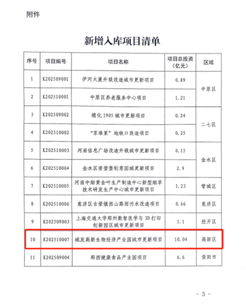 12月3日,鄭州市城市更新項目庫完成新一輪動態(tài)調(diào)整,鄭州城發(fā)集團(tuán)高新生物經(jīng)濟(jì)產(chǎn)業(yè)園城市更新項目成功通過評審,正式納入市級項目庫。這標(biāo)志著該項目作為鄭州市及高新區(qū)重點布局的戰(zhàn)略性新興產(chǎn)業(yè)載體,獲得了關(guān)鍵性的政策支持與發(fā)展動能,為鄭州“產(chǎn)業(yè)升級”的城市更新版圖增添了重量級標(biāo)桿。