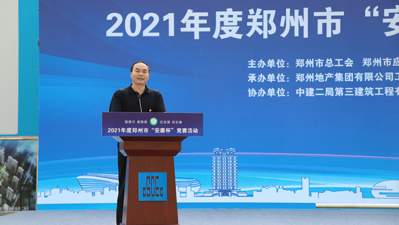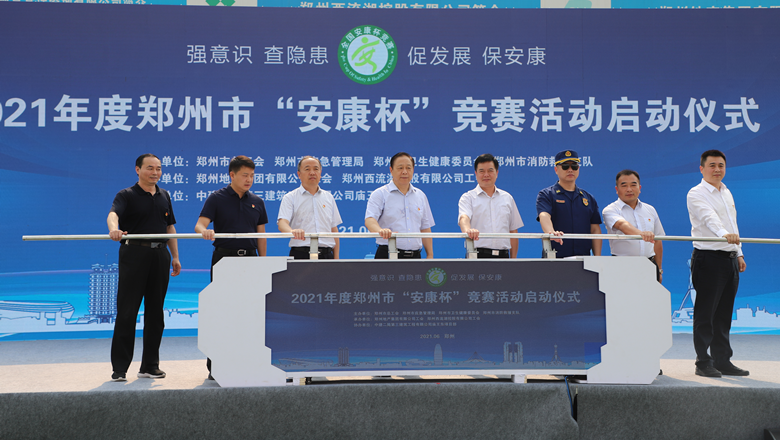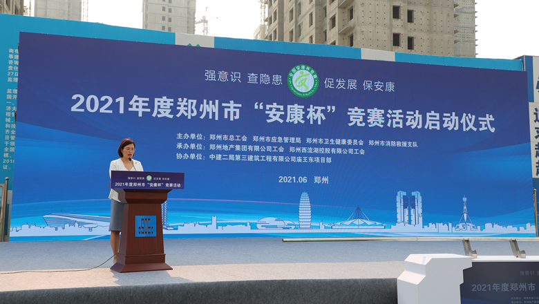 為深入貫徹落實習(xí)近平總書記有關(guān)加強(qiáng)安全生產(chǎn)工作的部署和要求,進(jìn)一步強(qiáng)化各級各部門、各企業(yè)主體的安全責(zé)任意識,確保我市安全生產(chǎn)形勢持續(xù)好轉(zhuǎn),職工安全健康不斷鞏固。6月11日上午,由鄭州市總工會、鄭州市應(yīng)急管理局、鄭州市衛(wèi)生健康委員會及鄭州市消防救援支隊主辦,鄭州地產(chǎn)集團(tuán)工會、鄭州西流湖控股有限公司工會承辦的鄭州市2021年“安康杯”競賽啟動儀式在中原新區(qū)廟王東安置區(qū)項目成功舉行。鄭州市相關(guān)組織部門、市總工會成員單位、地產(chǎn)集團(tuán)、西流湖公司、各參建單位共200余人參加啟動儀式。鄭州市一級巡視員,市總工會黨組書記、主席趙新中、鄭州市衛(wèi)生健康委員會黨組成員、二級調(diào)研員楊德林、鄭州市應(yīng)急管理局三級調(diào)研員安春茂、鄭州市消防救援支隊副支隊長、滅火救援指揮部部長李隆、鄭州市總工會副主席宋少丹、鄭州地產(chǎn)集團(tuán)有限公司監(jiān)事會主席、工會主席李靜波、鄭州地產(chǎn)集團(tuán)西流湖公司黨支部書記、董事長、總經(jīng)理 吉獻(xiàn)亮,中建二局第三建筑工程有限公司西北分公司黨委副書記、執(zhí)行總經(jīng)理趙海軍出席儀式。啟動儀式由市總工會勞動和經(jīng)濟(jì)部部長宋慧主持。