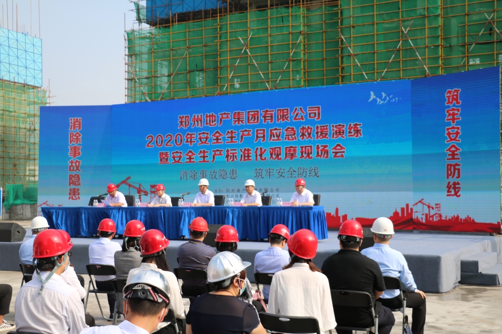 2020年6月18日,由鄭州地產集團主辦、商都控股集團承辦的“安全生產月”應急救援演練暨安全生產標準化觀摩活動,在商城佳苑項目圓滿舉辦。圍繞 “消除事故隱患,筑牢安全防線”主題,現場開展了高空墜落、防汛應急演練、安全墻簽名、宣傳片觀影等系列活動,集團9家子公司及項目參建監(jiān)理、施工單位共計200余人參加本次現場觀摩會。